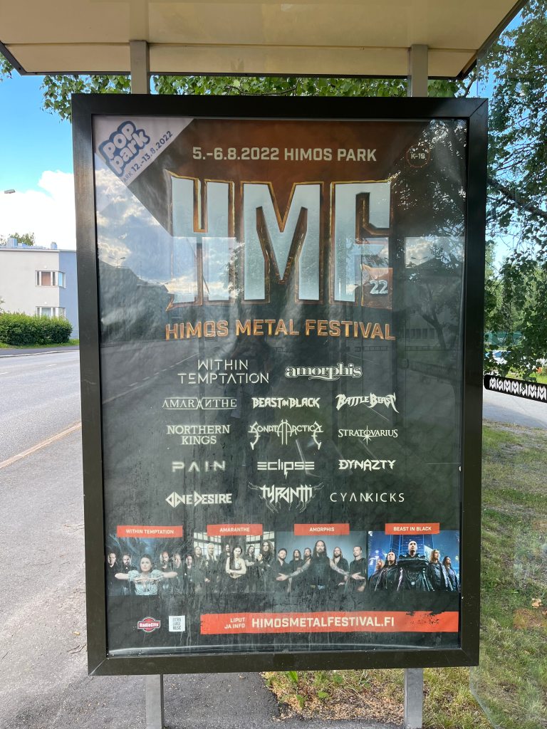 Himos Metal Festival,簡稱 HMF,是舉辦於 Jämsä 的金屬音樂節,也是我的北歐金屬樂朝聖之旅第一站。那時我剛安頓好學生宿舍沒多久,某天偶然在公車站看到 HMF 的宣傳海報,上面列出的樂團有一大部分參與過我的高中熱音生涯與指考地獄。