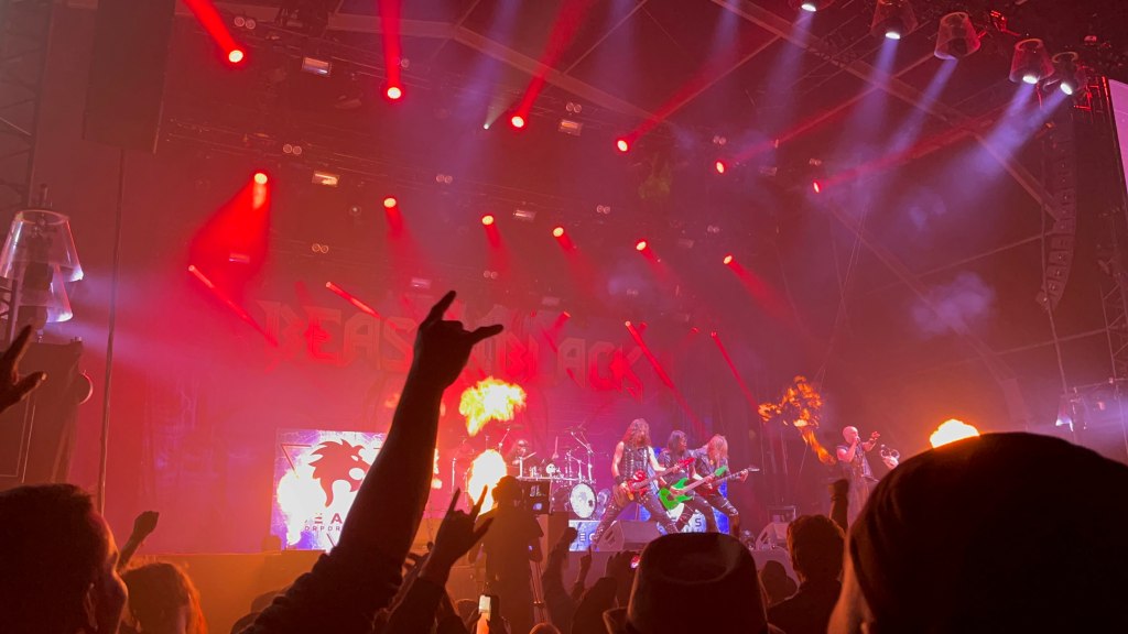 疫情進入尾聲,旅遊業也逐漸復甦的2022年夏天,果不其然有樂團在轉機時把器材搞丟了,於是出現了 hard rock 樂團拿著風格八竿子打不著的琴在表演,表演服裝也極其樸素和休閒,而芬蘭當地樂團就相當用心,舞台背板、造型樂器樣樣來,Beast in Black 榮獲當日最華麗的演出,樂手的琴是一個日本鬼頭的造型,主唱唱到激昂之處還搭配舞台噴火效果,雖然之前沒有聽過他們的歌,但這次現場演出深深俘獲我的耳道,也讓我感嘆力金速彈之魂生生不息!Beast in Black 另外有一點讓我喜愛的是:主唱說英文!由於主唱是希臘人,所以中間都用英文跟觀眾互動,讓我在遍地芬蘭文轟炸中感到格外親切。